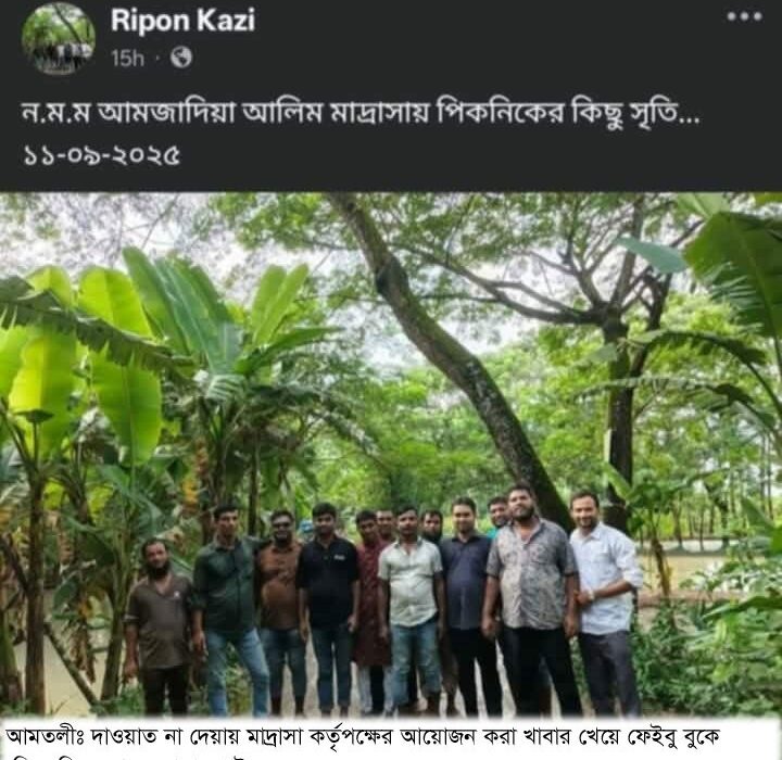 আমতলী উপজেলার ন ম ম আমজাদিয়া আলিম মাদ্রাসার ব্যবস্থাপনা কমিটির সভা উপলক্ষে আয়োজিত অনুষ্ঠানে দাওয়াত না পেয়ে স্থানীয় বিএনপির নেতা-কর্মীরা সব খাবার খেয়ে এবং নষ্ট করে ফেলেছেন বলে অভিযোগ উঠেছে। গত বৃহস্পতিবার দুপুরের এই ঘটনায় এলাকায় ব্যাপক ক্ষোভের সৃষ্টি হয়েছে এবং সামাজিক যোগাযোগমাধ্যমে এর নিন্দার ঝড় উঠেছে।