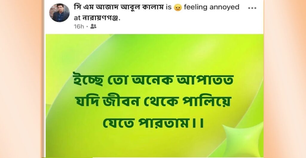 শনিবার (২৫ অক্টোবর) রাতে আবুল কালাম সামাজিক যোগাযোগমাধ্যম ফেসবুকে দেওয়া এক পোস্টে লেখেন, ‘ইচ্ছে তো অনেক। আপাতত যদি জীবন থেকে পালিয়ে যেতে পারতাম’।